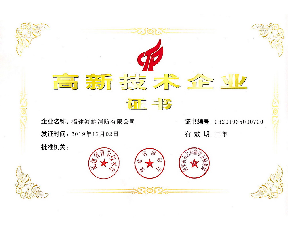 2020年4月13日福建海鯨消防有限公司取得手提式干粉滅火器/手提式水基型滅火器《中國(guó)國(guó)家強(qiáng)制性產(chǎn)品認(rèn)證證書》。自公司成立以來,海鯨消防不斷以創(chuàng)新為導(dǎo)向逐步完善消防產(chǎn)品線。目前公司能自主生產(chǎn)滅火器、消防水帶、泡沫滅火系統(tǒng)、氣體滅火系統(tǒng)、自動(dòng)噴水滅火系統(tǒng)、消防給…