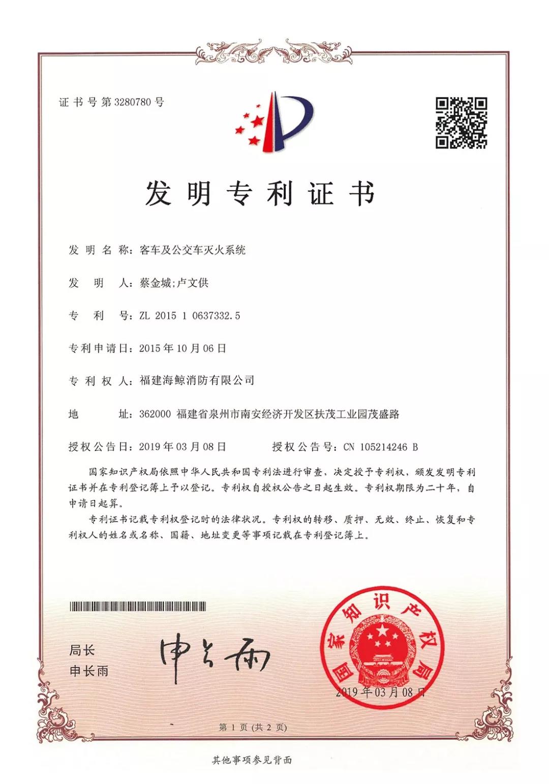 海鯨消防貫徹創(chuàng)新戰(zhàn)略,秉承以技術(shù)為主導(dǎo),年開發(fā)新品30余種,發(fā)展至今,獲得發(fā)明專利4項(xiàng),并累計(jì)獲得實(shí)用新型專利和外觀專利40余項(xiàng)。