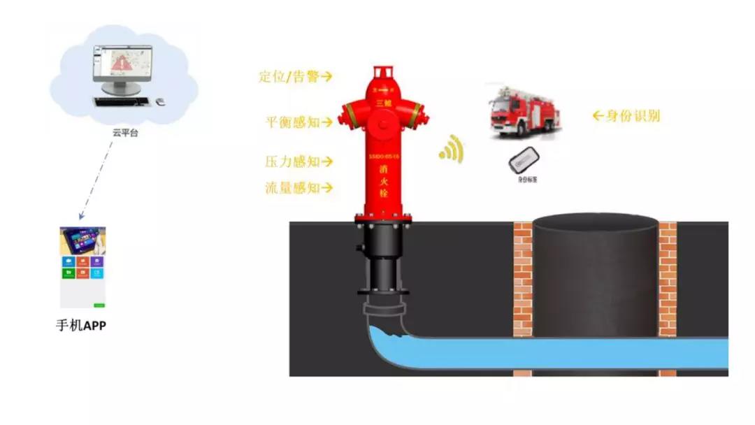 4、 智能管理應(yīng)用:智能栓將各種狀態(tài)數(shù)據(jù)匯集到云端,應(yīng)用軟件技術(shù)進行分析處理;