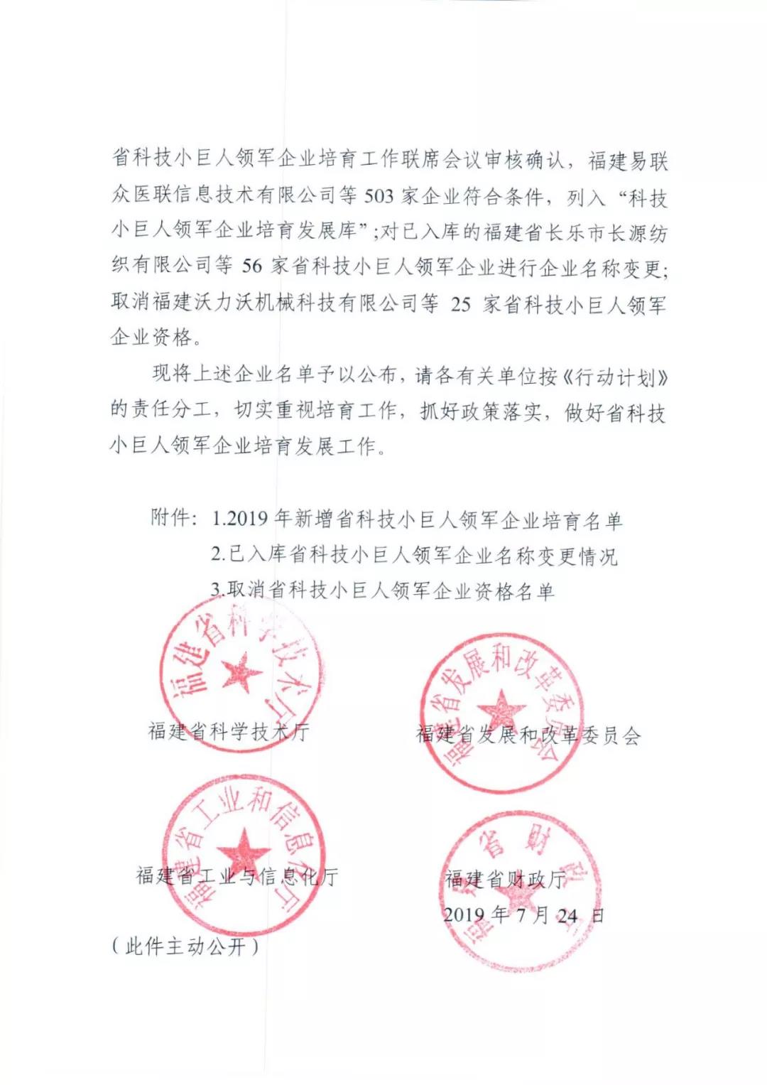 關(guān)于公布2019年省科技小巨人領(lǐng)軍企業(yè)新增培育名單等情況的通知
